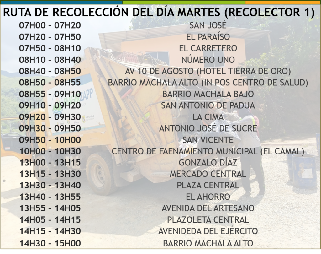 RUTAS DE RECOLECCIÓN DE LOS DESECHOS SÓLIDOS EN EL CANTÓN PORTOVELO.